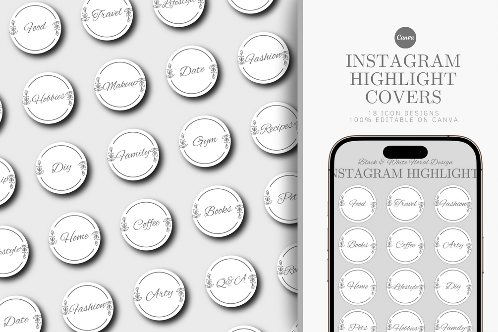 INSTAGRAM HIGHLIGHT COVERS Black & White Floral
